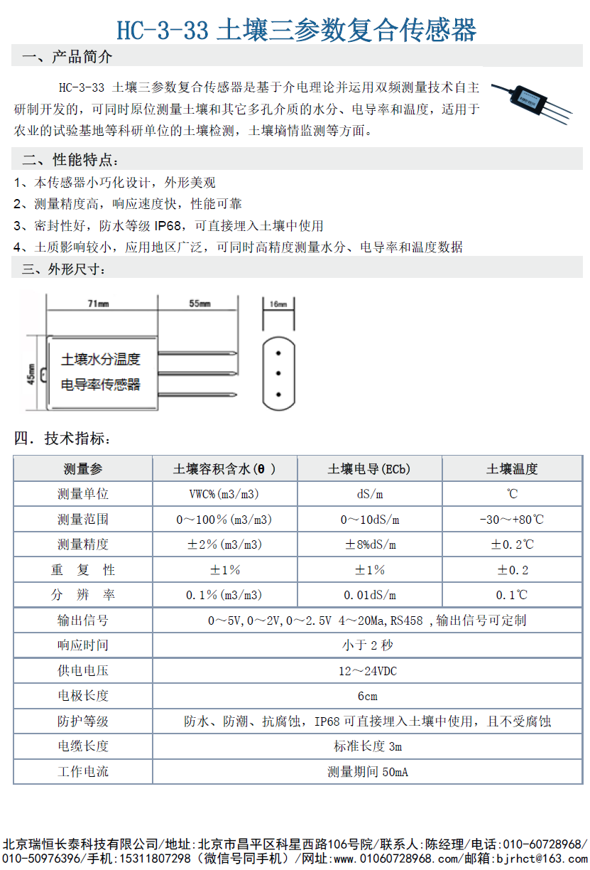 HC-3-33土壤水分/温度/电导率传感器