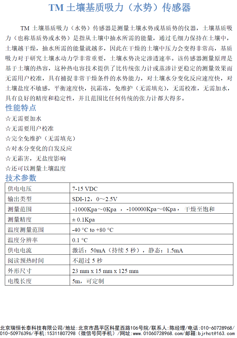 TM土壤基质吸力(水势)传感器